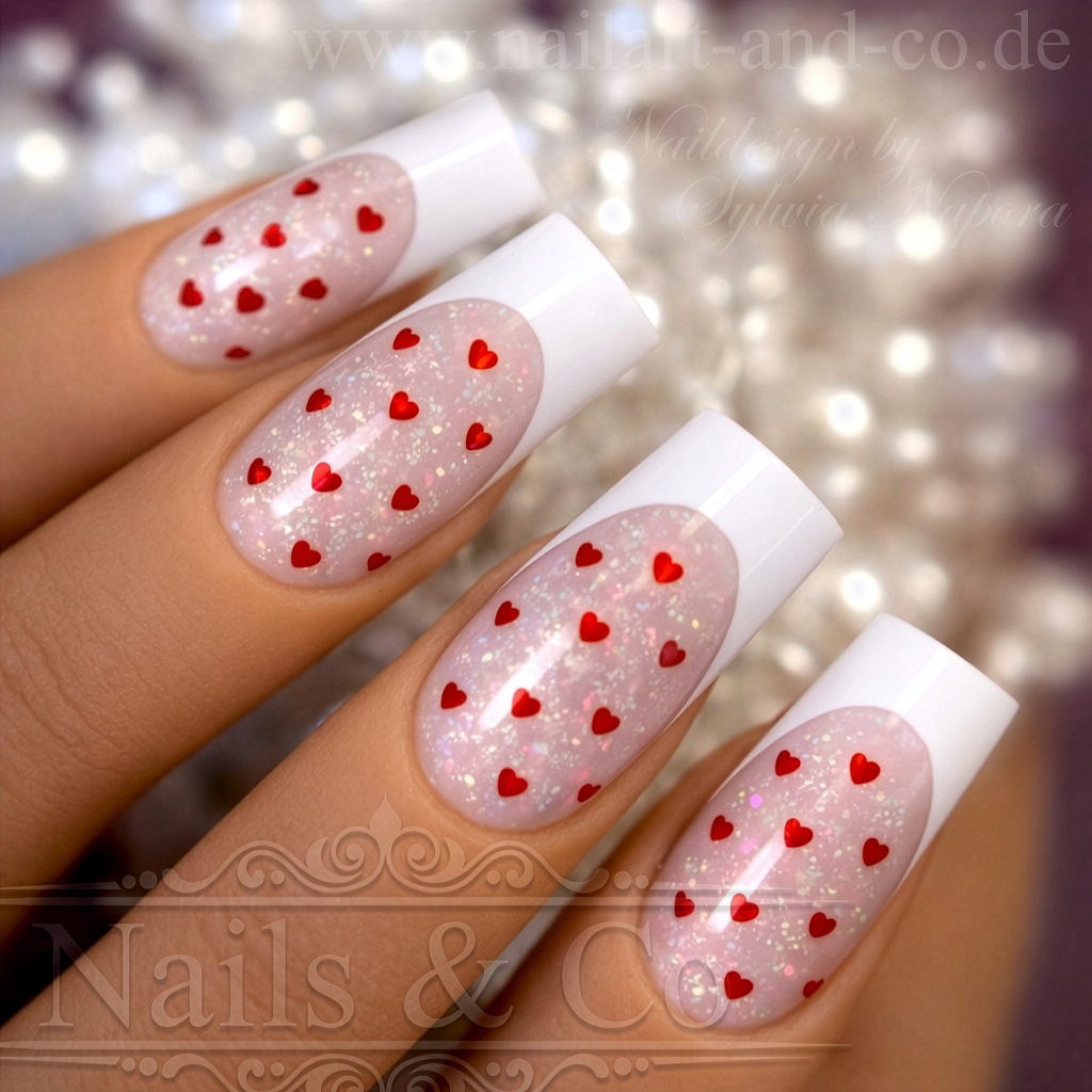 Minimalistinnen kommen ebenfalls auf ihre Kosten. Ein milchiger Untergrund mit einem winzigen roten Herz wirkt dezent und gleichzeitig unglaublich stilvoll. Weniger ist hier definitiv mehr – und genau das macht diesen Look so edel.