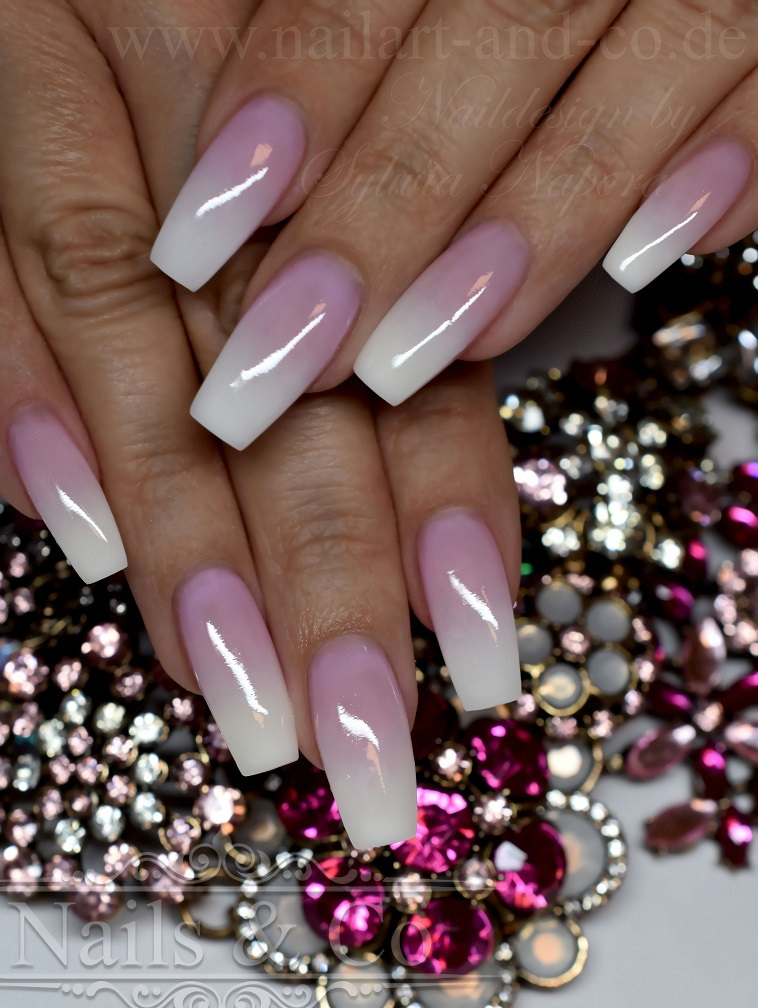 Statt klar abgegrenzter weißer Spitzen besticht dieser Stil durch einen sanften, fließenden Farbverlauf von zartem Rosa oder Nude hin zu milchigem oder strahlendem Weiß. Das Ergebnis: ein besonders weicher, natürlicher Look, der zeitlose Eleganz mit einem Hauch von Moderne vereint.