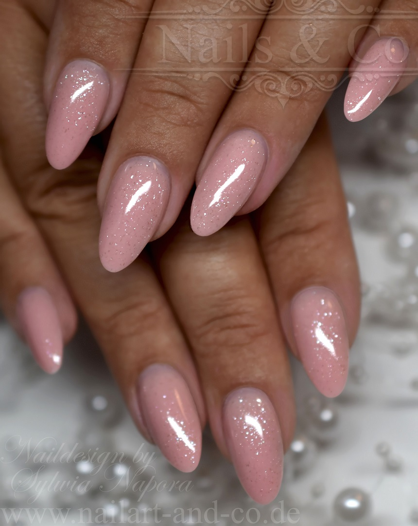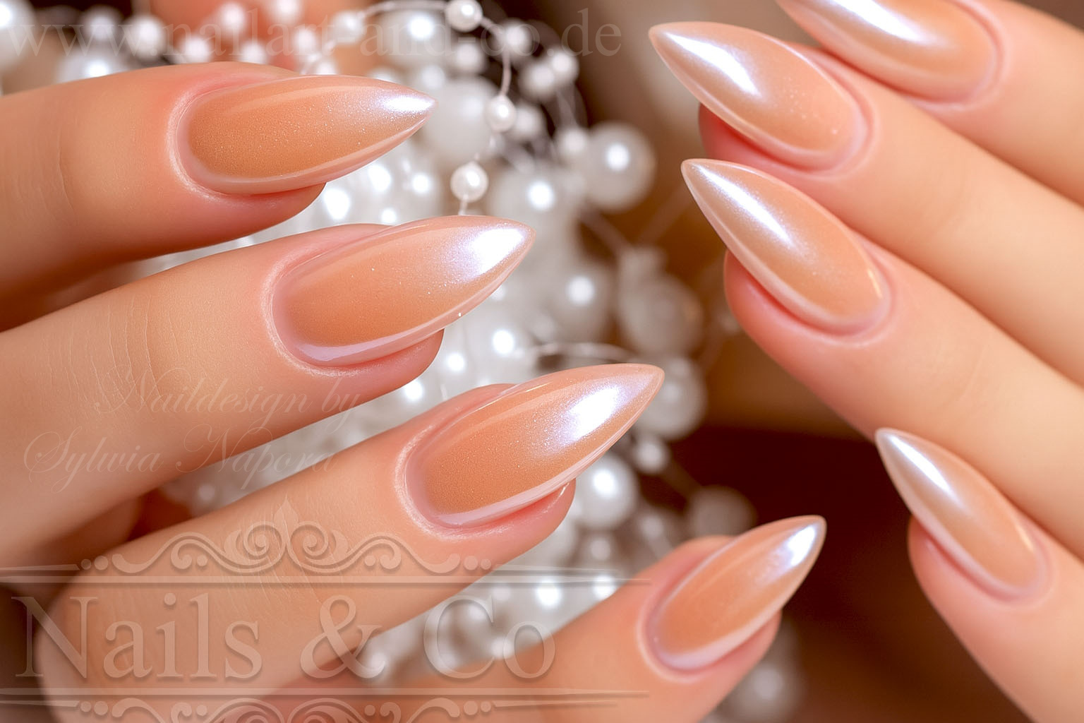 Diese traumhafte Nagelmodellage ist von feinem Schimmer durchzogen , der wie Sternenstaub wirkt. Die elegante Form und das dezente Funkeln verleihen dem Design eine zeitlose Anmut – edel, feminin und zugleich zurückhaltend. Perfekt für Bräute, besondere Anlässe oder einfach für einen Hauch von Magie im Alltag.