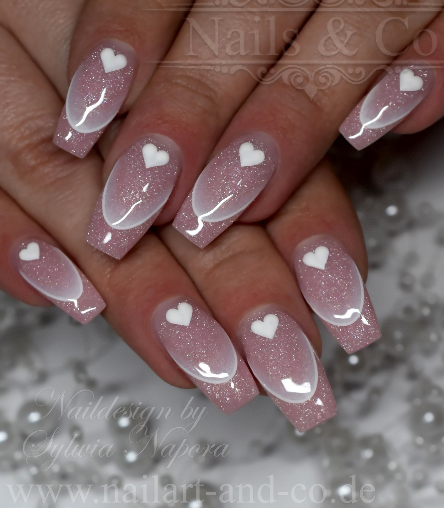 Zart. Romantisch. Ausdrucksstark. Lassen Sie sich von einem Design verzaubern, das Herz und Stil vereint: Ein sanfter Farbverlauf in Rosé und Weiß trifft auf schimmernde Highlights und liebevoll eingearbeitete Herz-Details. Perfekt für den Valentinstag, besondere Anlässe – oder einfach, um sich selbst etwas Schönes zu gönnen. Vereinbaren Sie jetzt Ihren Termin und bringen Sie Romantik auf Ihre Nägel – stilvoll und einzigartig.