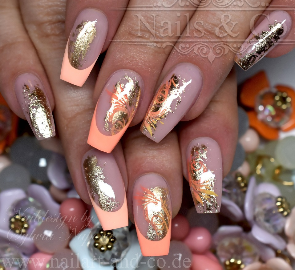 Glamour pur – für den großen Auftritt. Dieses extravagante Nageldesign zieht alle Blicke auf sich: Eine dramatische, stilettoförmige Silhouette trifft auf einen faszinierenden Glaseffekt in warmen Rubin- und Goldtönen. Die transparente Spitze erinnert an kunstvoll geschliffene Edelsteine, die im Licht intensiv funkeln und schimmern – ein luxuriöses Spiel aus Licht und Farbe. Abgerundet wird das Design durch eine zarte Rosé-Basis, die dem Look eine elegante Natürlichkeit verleiht. Das Ergebnis: ein ausdrucksstarkes Statement aus Stärke, Raffinesse und Exklusivität. Perfekt für besondere Anlässe, Events oder den unvergesslichen Auftritt – denn manchmal darf es einfach mehr sein.