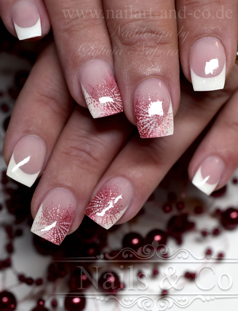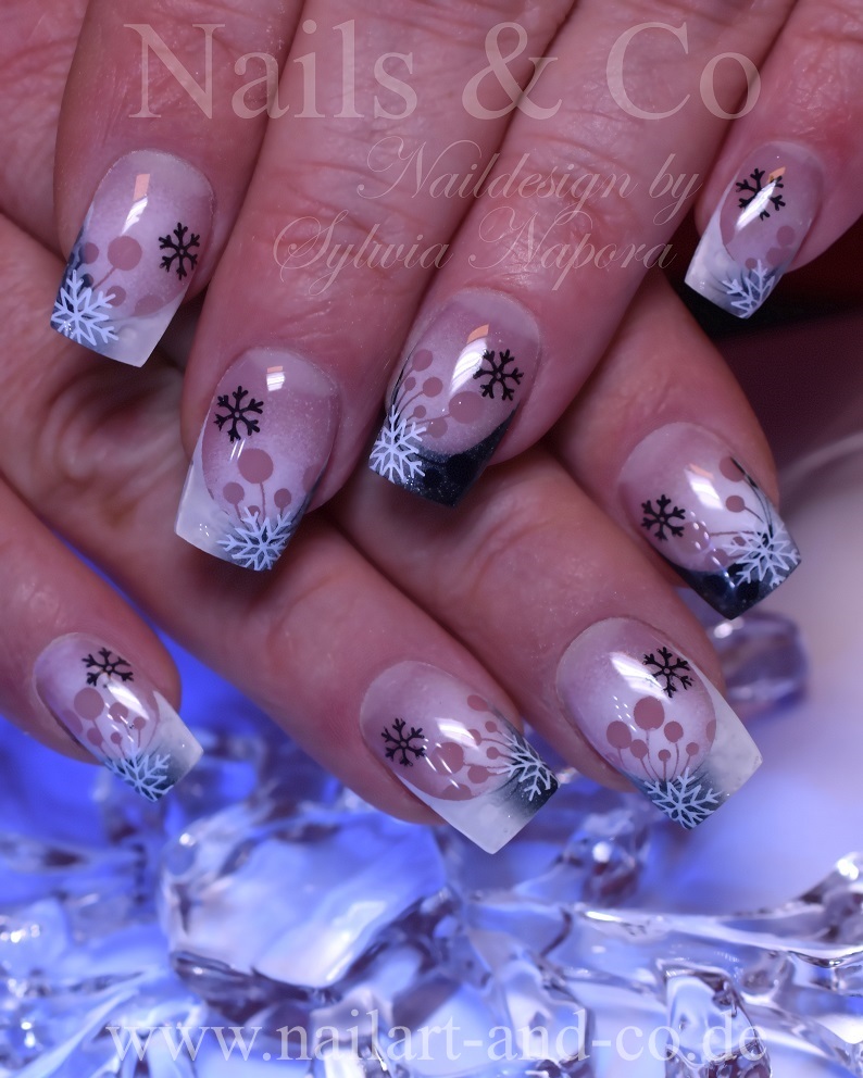 Klassisches weißes French hier kombiniert mit Glitter und Schnee.